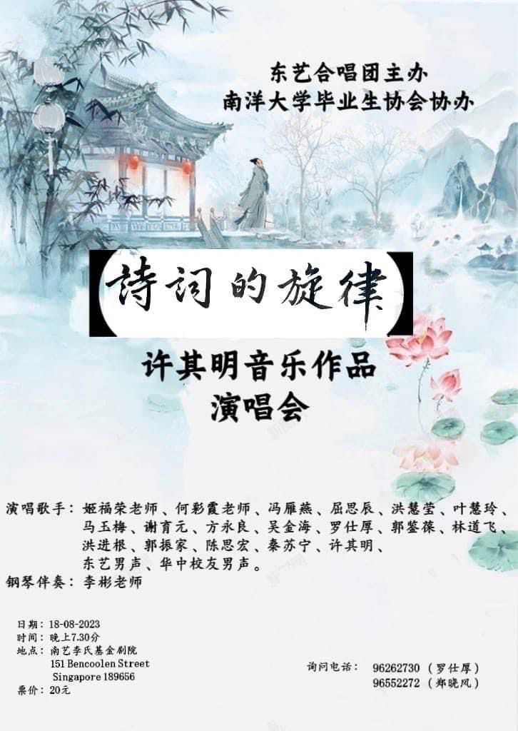 18/08/2023 | 《诗词的旋律》许其明教授音乐作品演唱会 东艺合唱团主办,南洋大学毕业生协会协办 |
