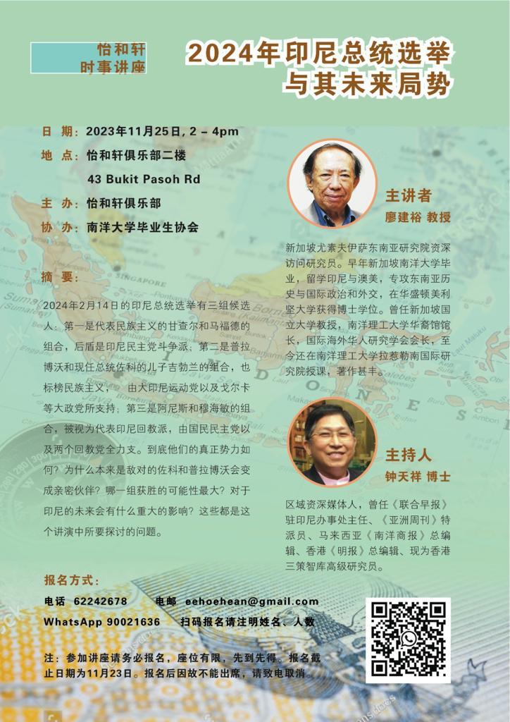 25/11/2023 | 印尼总统选举的课题讲座 怡和轩俱乐部主办, 南洋大学毕业生协会协办 |